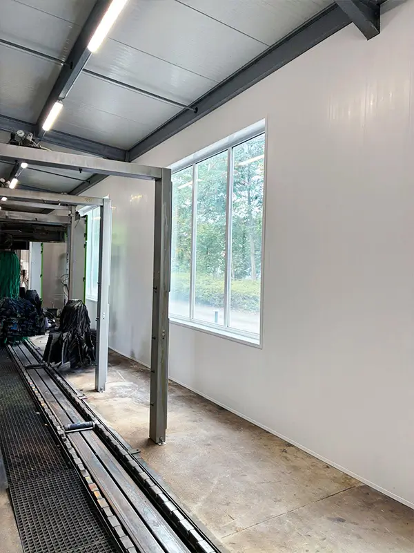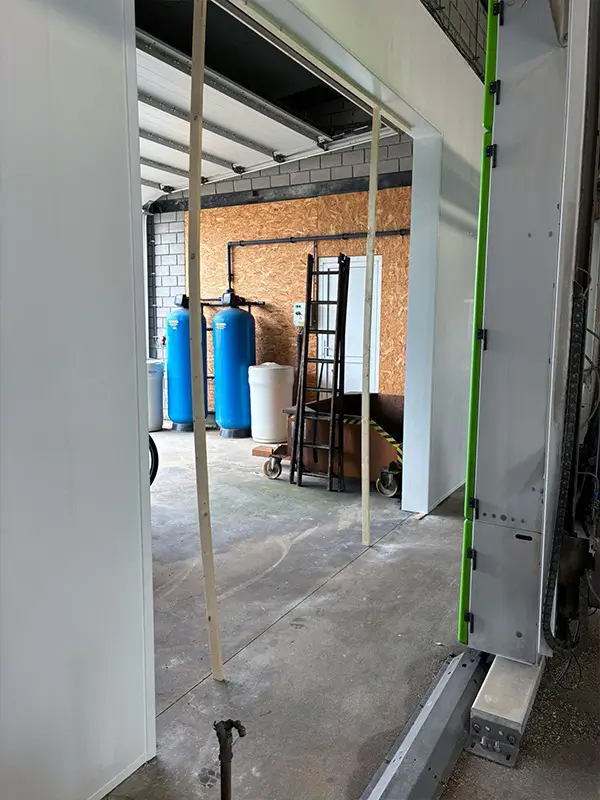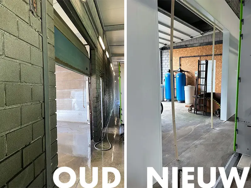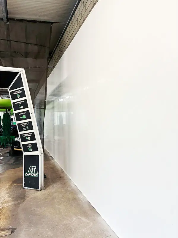 Die Wände in der Kettenwaschanlage von AT Carwash in Geel, Belgien, wurden gründlich renoviert! Die alten gemauerten Wände sind sauber hinter neuen Cleanbuild-Kunststoffpaneelen für Waschanlagen verkleidet. Die Waschanlage, die ganze 41 Meter lang ist, sieht nun wieder tipptopp aus!